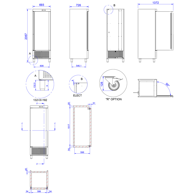 Control electrónico de la temperatura y del desescarche con visor digital.