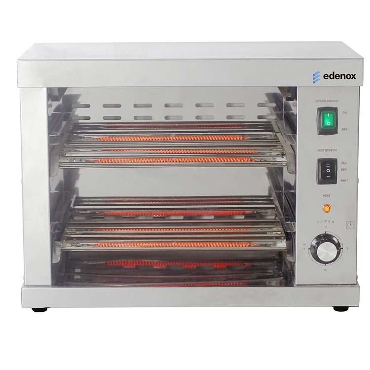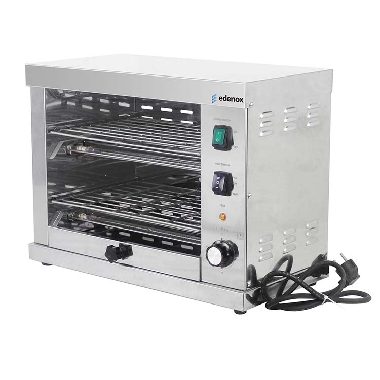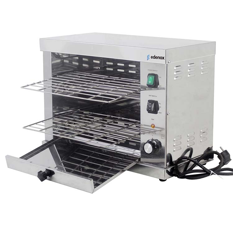 Tostadora Profesional Eléctrica TOST-2 de la marca edenox con la que obtener un tueste del pan con la simple ubicación de las rebanadas de pan sobre las