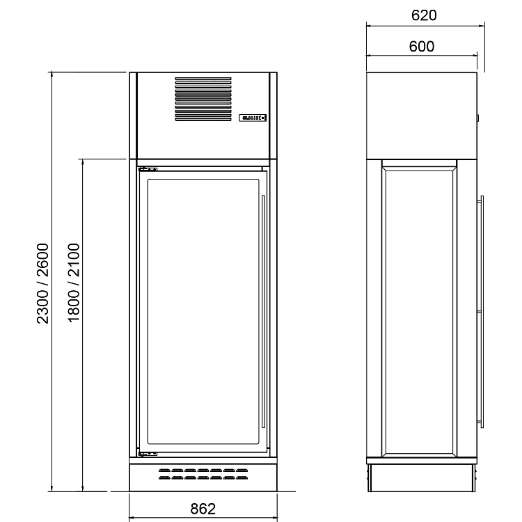2300 mm de altura: Capacidad de 70 botellas 1 puerta, 140nbotellas 2 puertas.